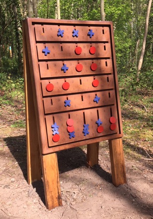 (Book Exchange, Vitamin Information, Yoga Positions, Meditation Instruction Stools, Naughts and Crosses, Bird Feeders, Recorded Birdsong QR code links, Edibles Information, Foraging Planters, Rubbing Post, HIIT (high-intensity training point).
