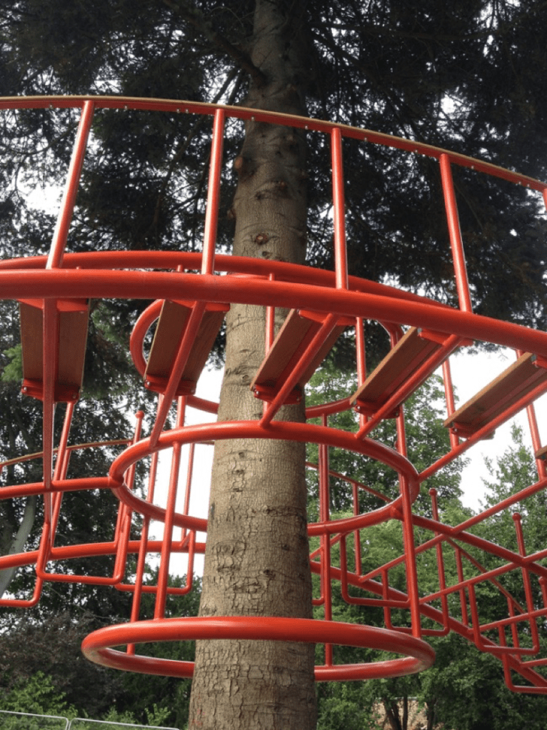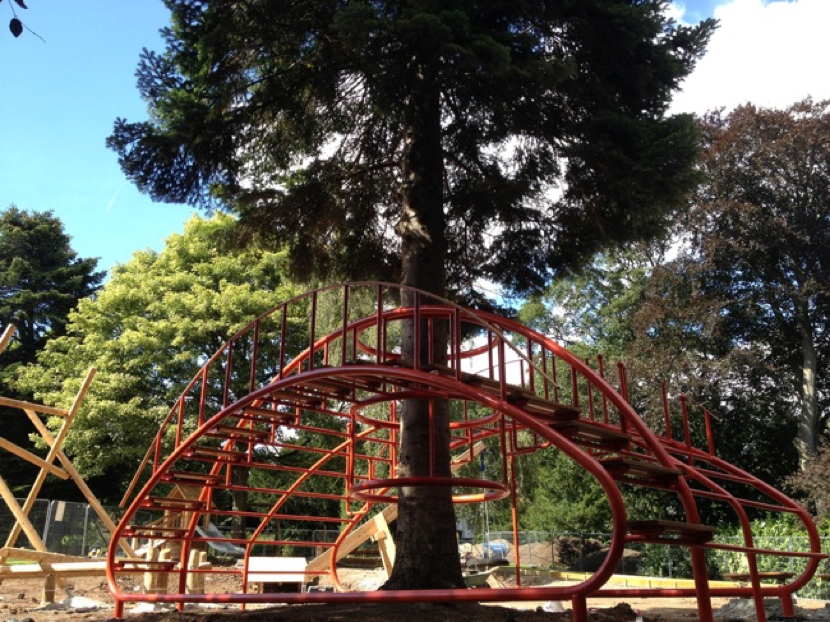 Arx was commissioned as a bespoke piece of creative play for the new play area within Grosvenor Parks refurbishment programme. The work was designed to fit around the large tree left within the designated space. I wanted to engage with the park and allow the children using the space a way in which to explore and inhabit the physicality of the tree in a safe but non-prescriptive way.