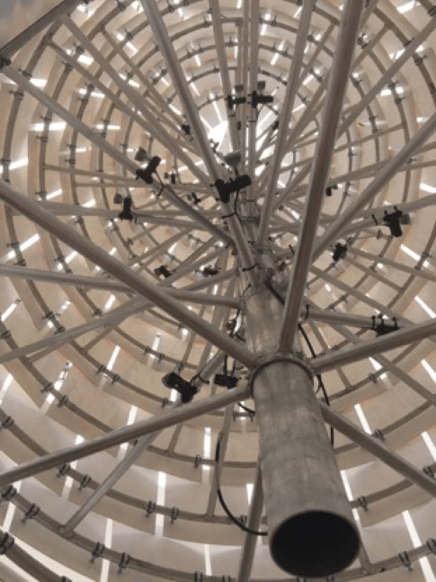 The coded lighting allows password-enabled staff and the public to connect to the stand-alone wifi, download the control application and play with lighting sequences within the form.
