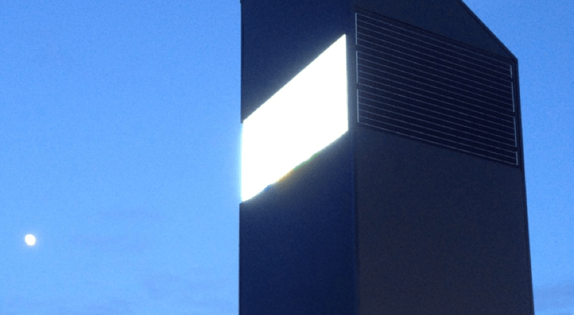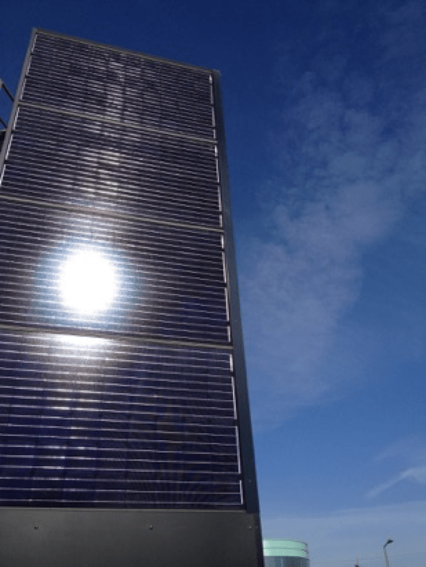 Mild Steel, Trespa. Solar Panels, Dot Matrix Screens (2m x 2m x 8m)