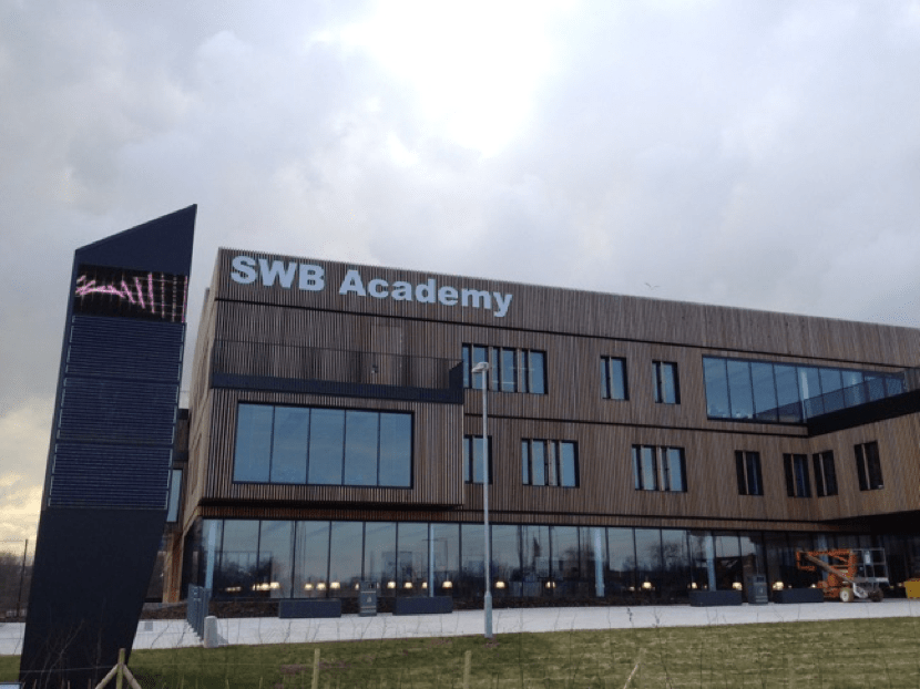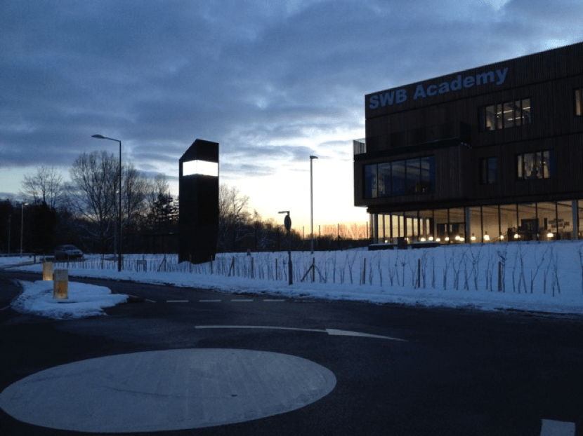 Elizabeth represents the ethos of the new build Wolverton Science and Engineering Academy. The screens that wrap around the corner are powered by the solar panels that clad the structure. A rolling programme of films and graphics content are curated by a designated group of pupils and staff.