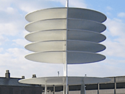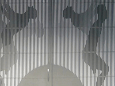 The artwork for Plymouth Street, consists of a gate design that had to function on a variety of levels. Primarily the client (Cardiff City Council) required a closing off of an alleyway on the main shopping boulevard in Cardiff City centre. The gate had to be a fully functioning fire gate with quick release from within. The design commissioned by Safle (Public Arts consultants) consists of laser cut and powder coated stainless steel panels that are offset and using the moiré effect create an animation of figures performing a summersault. The effect is created by the motion of the viewer in passing.