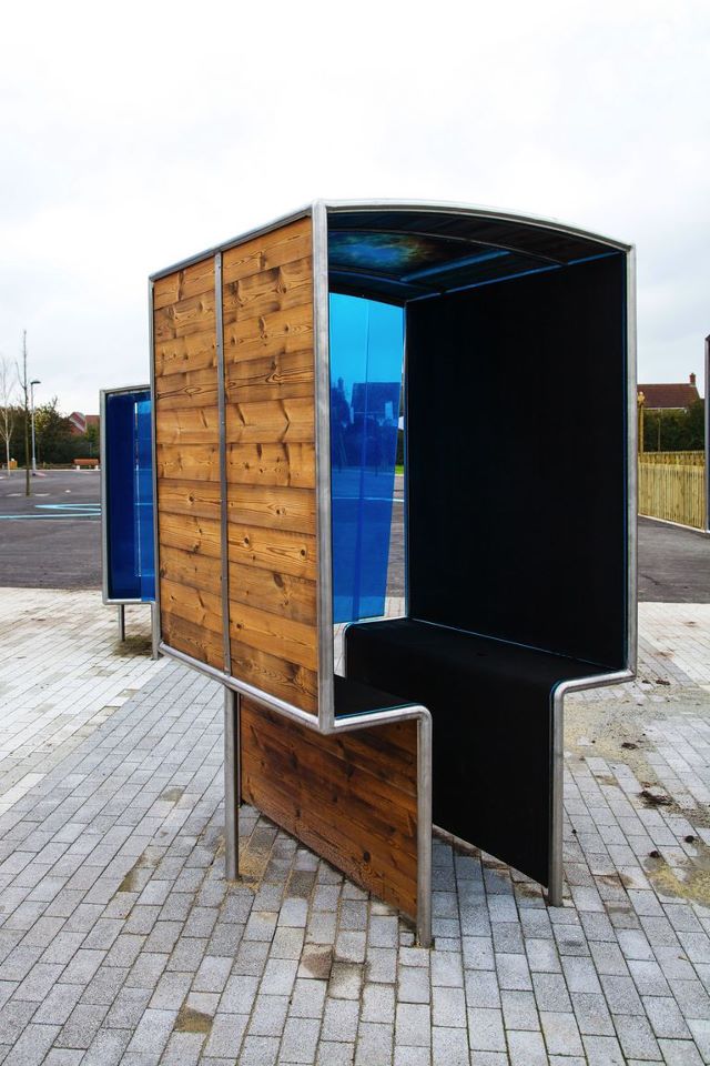 Three timber forms, act as meeting and seating places and the modules are designed to be climbed on, to and dangle feet, from. Height widths and lengths vary to accommodate wheelchair users a variety of group numbers and ages of students. The tall version seats pupils at 1m this height may require a small climb or help up into the seating ledge.
