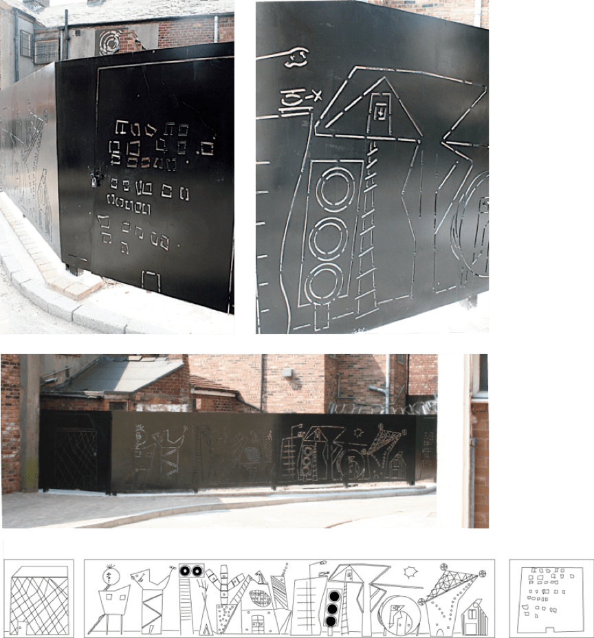 Steel fence and gates, designed with Stockport Primary School pupils.