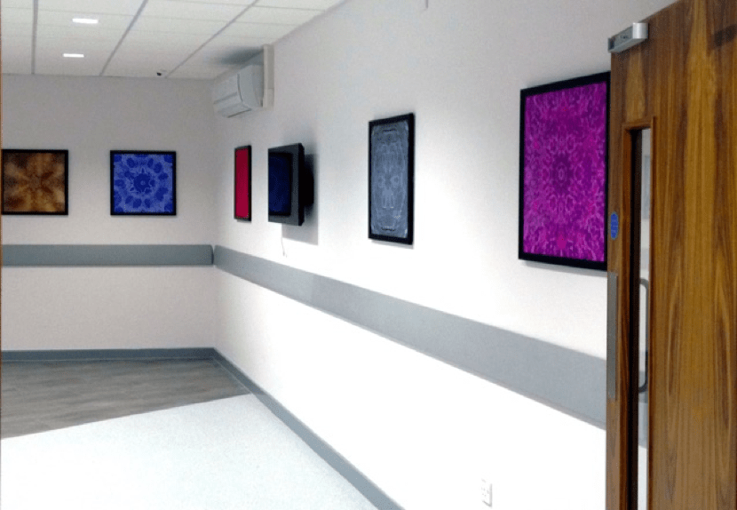 For this commission we developed a series of large format lenticular kaleidoscopic images for the waiting room, as well as a series of static large format images for the corridors.