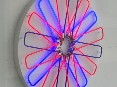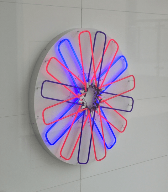 The neon light-work is situated on the outside wall of the headquarters. Its simple but unifying intention is to highlight the importance of good communication between those that work here, those that live nearby and the wider community that the police serve.
