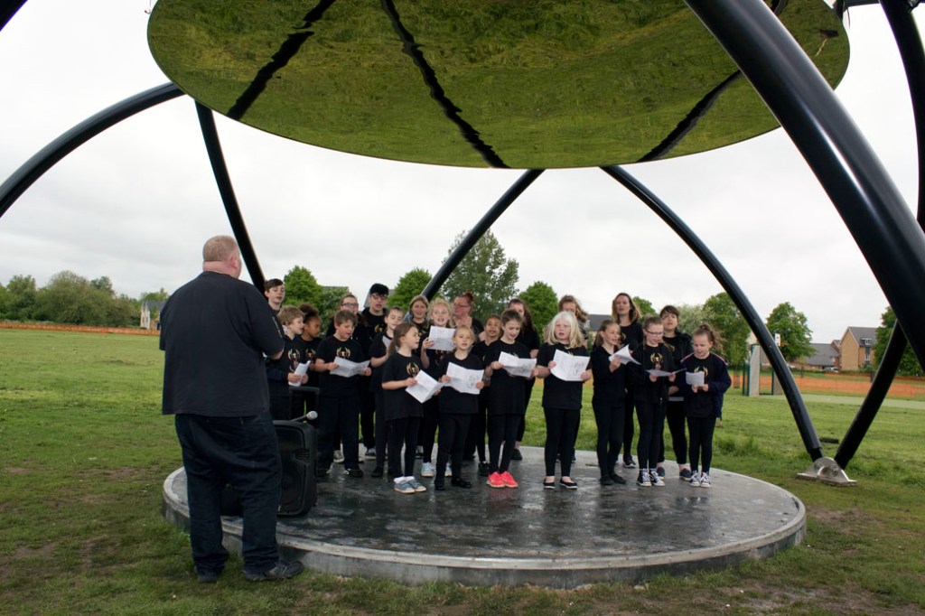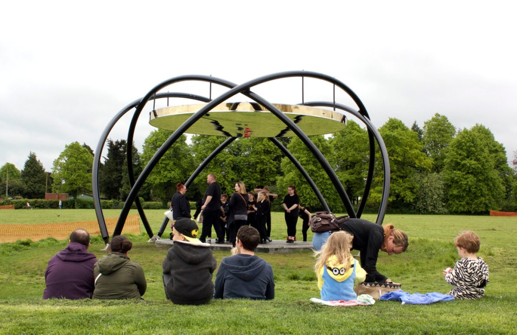 This artwork references the traditional bandstand and its function as a community-cohesive structure. Surrounded by Victorian and new build contemporary housing, the form’s purpose and geometry explores ideas of Victorian philanthropy and references cast iron lattice work on palm houses and other civic structures in the town.
