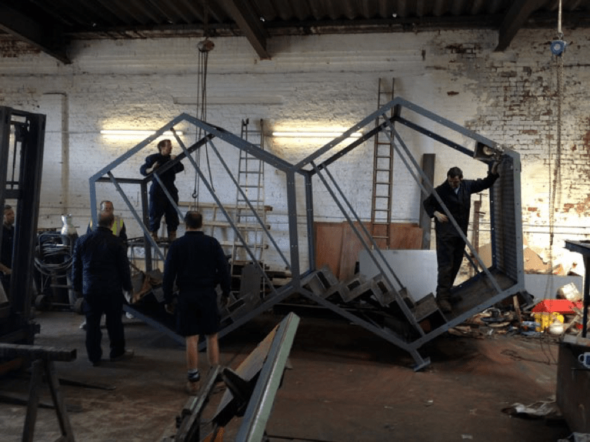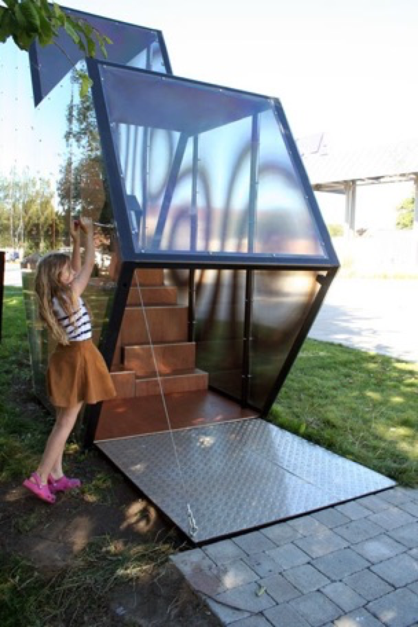 The structures entrance, can be closed and locked using a boat winch mechanism. Zee is a companion piece for S-Line for ESLA. The short video link above shows the work in context.